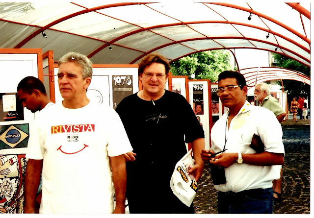 Literalmente saído do túnel do tempo: Os cartunistas Mino (CE), Fred (PB), Érico (MA) e ao fundo Alcy (RJ). É o Piauí integrando o Brasil através do humor gráfico.